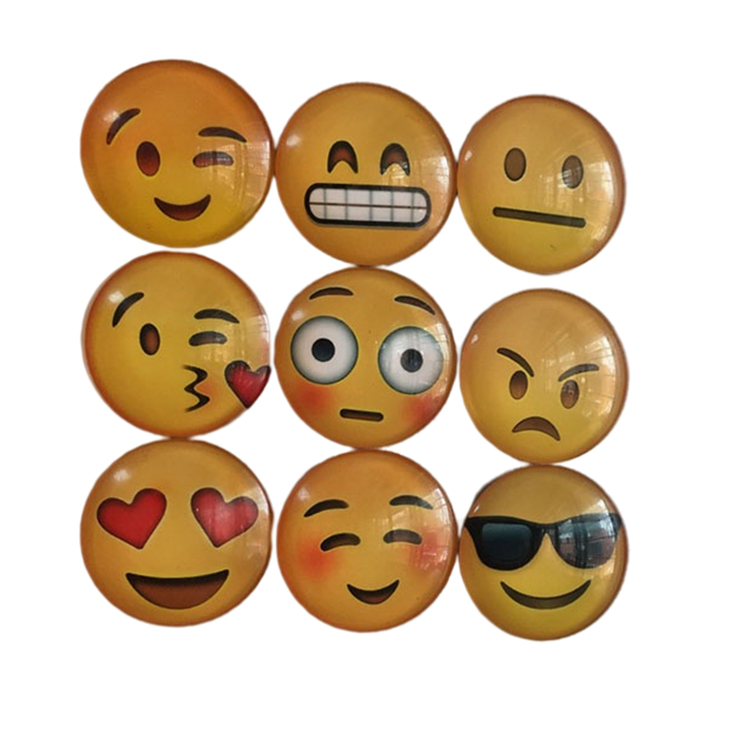 Wholesale Cartoon Cute Smiling Face Refrigerator Sticker Glass Round Dome Fridge Magnet